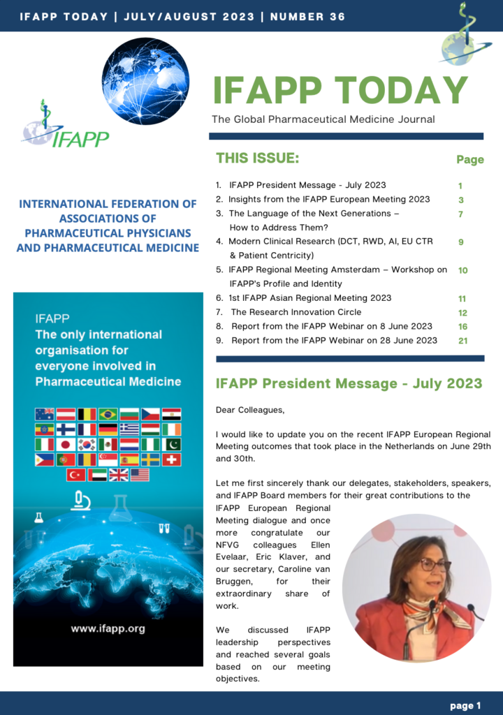 With compliments of the IFAPP – International Federation of Associations of Pharmaceutical Physicians & Pharmaceutical Medicine – Communication Working Group, you can read here the seventh edition of IFAPP TODAY of 2023!