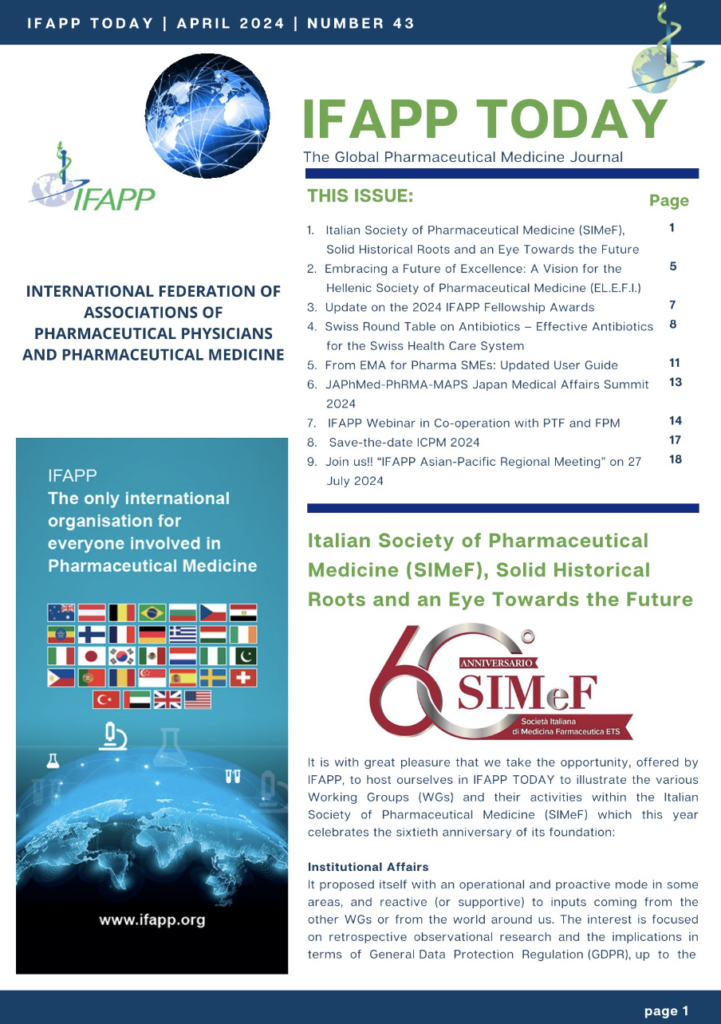 With compliments of the IFAPP – International Federation of Associations of Pharmaceutical Physicians & Pharmaceutical Medicine – Communication Working Group, you can read here the fourth edition of IFAPP TODAY of 2024!