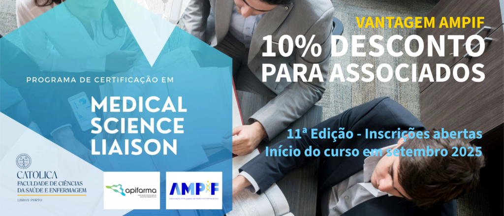 No âmbito de um protocolo de colaboração recentemente assinado entre a AMPIF e a Faculdade de Ciências da Saúde e Enfermagem da Universidade Católica Portuguesa, os associados com inscrição ativa na AMPIF terão acesso ao Programa de Certificação em Medical Science Liaison com um desconto de 10% sobre o valor da propina.